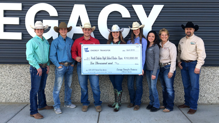 Energy Transfer’s multi-year support of the North Dakota High School Rodeo Association included sponsorship of the national team jackets and national team shirts for participants, totaling $30,000.